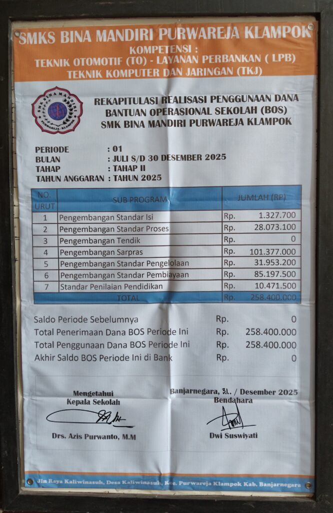 Laporan Rekapitulasi Realisasi Penggunaan Dana BOS Reguler Tahap 2 Tahun 2025Kegiatan Sekolah / Oleh Alfi / 5 Januari 2026